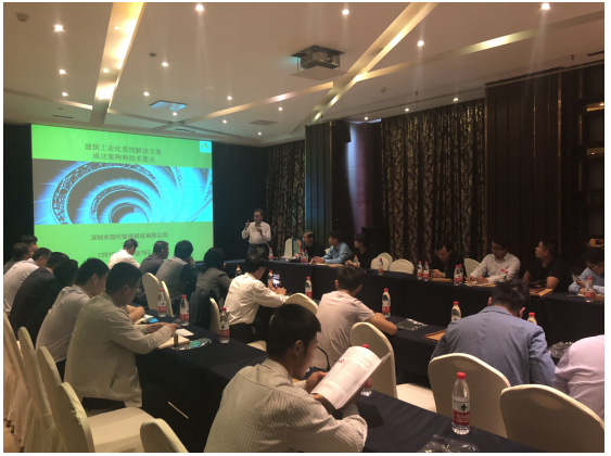 會上,現(xiàn)代營造總經(jīng)理谷明旺為大家分享了建筑工業(yè)化系統(tǒng)解決方案的成功案例及技術(shù)要點。在交流環(huán)節(jié)上,與會人員提出了許多關(guān)于裝配式建筑行業(yè)中設(shè)計、生產(chǎn)、施工等各個方面的問題,谷總結(jié)合行業(yè)的發(fā)展和與會人員的實際情況,進行了一一解答。與會專家們在與谷總交流完后,都對我司建筑工業(yè)化系統(tǒng)解決方案表示高度認(rèn)同。